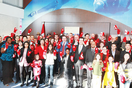 中新網(wǎng)2月22日電 據(jù)加拿大《明報》報道,加拿大聯(lián)邦公民及移民部長康尼(Jason Kenney)19日出席45名新公民宣誓入籍儀式,祝愿他們在新的旅程取得更加多的成績,獲得更精彩的生活。而加拿大雙人滑組合Jessica Dube與Bryce Davison也特別出席儀式,鼓勵新公民們做體育和多元文化的貢獻者。