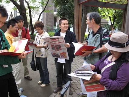 10月4日,日本僑報(bào)社創(chuàng)辦的星期日漢語(yǔ)角舉行第109次交流會(huì)。會(huì)上,剛剛從北京參加國(guó)慶觀禮回來的日本僑報(bào)社總編輯、日本湖南人會(huì)會(huì)長(zhǎng)段躍中,向漢語(yǔ)角參加者介紹了10月1日在天安門廣場(chǎng)舉行的中國(guó)建國(guó)60周年紀(jì)念大會(huì)等一系列國(guó)慶活動(dòng),還傳閱了中國(guó)60華誕慶典的有關(guān)報(bào)道,欣賞了國(guó)慶專題郵票。
