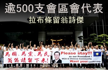 中新網(wǎng)10月15日電 據(jù)馬來西亞《星洲日報(bào)》報(bào)道,馬華支會和區(qū)會逾500名代表,15日拉起13條巨幅布條表達(dá)心聲,以期力挽總會長翁詩杰留下,繼續(xù)領(lǐng)導(dǎo)馬華進(jìn)行改革。