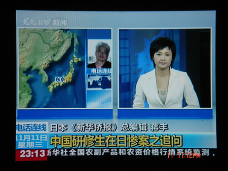 中新網(wǎng)11月13日電 據(jù)日本新華僑報(bào)網(wǎng)報(bào)道,11月8日,日本熊本縣發(fā)生中國(guó)農(nóng)業(yè)研修生王寶泉自殺以及與此相關(guān)的命案!度毡拘氯A僑報(bào)》作為華文媒體在第一時(shí)間進(jìn)行了報(bào)道,經(jīng)過(guò)中國(guó)門戶網(wǎng)站轉(zhuǎn)載后,引起強(qiáng)烈反響。11月11日晚上,中國(guó)中央電視臺(tái)新聞?lì)l道24小時(shí)節(jié)目對(duì)該報(bào)總編輯蔣豐作了連線采訪。