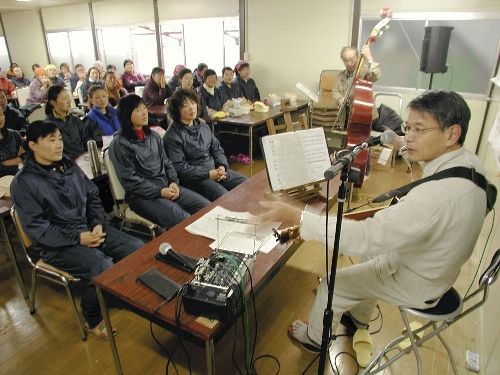 “日中之歌交流會”舉辦當天,井村行夫演奏吉他用中文為中國研修生唱出了《大海啊,故鄉(xiāng)》,一些思念故鄉(xiāng)的中國研修生當場流下了熱淚。隨后,中國研修生們集體用日語唱出了《四季歌》,把這次的交流推向高潮。(仇棣)
