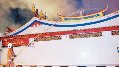 瓜登市民每年都依據(jù)傳統(tǒng)在大年初九到這所福建古廟拜天公,不過(guò),這所廟卻在慶典后不及24小時(shí)的22日晚約9時(shí)30分發(fā)生火患。該廟中間殿堂率先冒煙,進(jìn)而燃起雄雄烈火,并把廟內(nèi)多處燒毀。