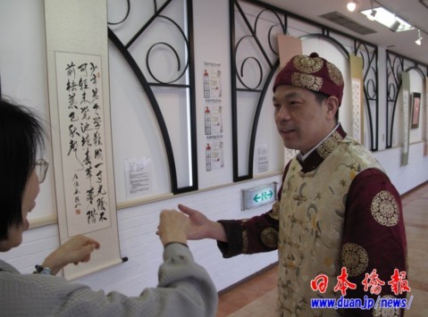 這位濃眉大眼的大漢,是湖南岳陽人,眉宇間有一股坦蕩之氣逼人。總讓筆者懷疑是武林中人。就是這位,自2001年來日本傳播指書文化,短短10年間,已是列島上下,上至國家政要,下至普通市民,爭相結(jié)交的人氣者。