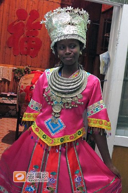 當(dāng)晚,在熱情的中國家長(zhǎng)帶領(lǐng)下,漢語橋選手“黑珍珠”闖三關(guān):對(duì)山歌、喝米酒、擊鼓后,順利入住苗家,當(dāng)穿上苗族服裝,“黑珍珠”興奮地在鏡子面前轉(zhuǎn)了幾圈,表達(dá)喜悅的心情。(李湘)