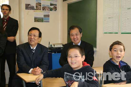 10月13日,該校校長安妮·弗雷斯蒂埃女士(Any FORESTIER)和巴黎學(xué)區(qū)長巴特里克·熱拉爾先生(Patrick GERARD)熱情歡迎中國教育部副部長郝平、中國駐法大使孔泉及其夫人等,赴德薩伊中學(xué)進行中文班教學(xué)觀摩,并在隨后接受了中方贈送的圖書和教具。