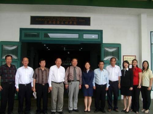 蘇北華聯(lián)副理事長(zhǎng)廖章然率隊(duì)陪同客人參觀了亞洲國(guó)際友好學(xué)院,介紹了該校的創(chuàng)辦過(guò)程及發(fā)展現(xiàn)狀,并先后參觀了學(xué)院圖書館、視聽(tīng)室、遠(yuǎn)端教育室、畫展室、星洲大禮堂,就學(xué)院的長(zhǎng)遠(yuǎn)發(fā)展及設(shè)施建設(shè)交換了意見(jiàn)。之后,蘇振武又來(lái)到中國(guó)老師的宿舍樓,與中國(guó)老師進(jìn)行親切交談。