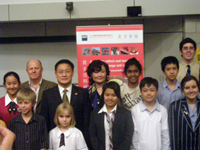 任共平在致辭時表示,很高興看到昆州學(xué)生如此踴躍地學(xué)習(xí)中文并參加中文演講大賽,祝賀獲獎?wù)呷〉玫暮贸煽儭K赋,學(xué)習(xí)中文既可以為自己增加一門語言技能,也能打開了解中國歷史和文化的窗口,建立起相互溝通、增進中澳兩國人民友誼的橋梁。他表示,各位學(xué)生在慶祝中華人民共和國建國60周年之際參賽、獲獎,具有特殊意義,希望同學(xué)們繼續(xù)努力。