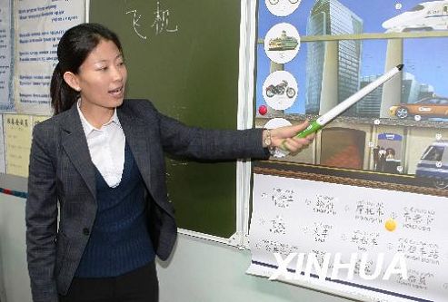 9月10日,在蒙古國(guó)首都烏蘭巴托市育彩學(xué)校,中國(guó)漢語(yǔ)志愿者老師包圖雅為三年級(jí)學(xué)生講漢語(yǔ)課。近年來(lái)蒙古國(guó)漢語(yǔ)學(xué)習(xí)持續(xù)升溫,各級(jí)學(xué)校對(duì)漢語(yǔ)老師的需求也在增加。從2005年起,中國(guó)政府開始向蒙古國(guó)派出漢語(yǔ)志愿者教師,幾年來(lái)的多批漢語(yǔ)教師受到各級(jí)學(xué)校的歡迎。(新華社/阿斯鋼 攝)