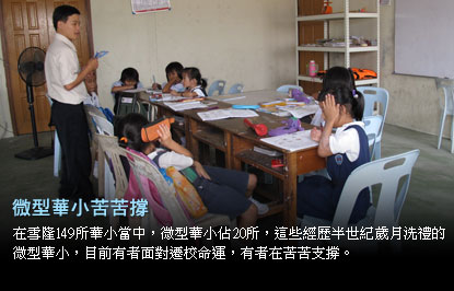 在這些微型華小當(dāng)中,除了大馬教育部曾于去年1月底宣布會(huì)遷校的4所華小之外,其余16所華小的命運(yùn),教育部都沒(méi)有做出任何指示。有的學(xué)校也不愿遷校,希望能繼續(xù)在現(xiàn)有地區(qū)繼續(xù)扮演提供華文教育的角色。