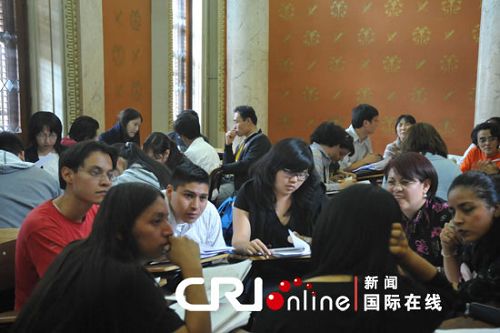 在本次培訓(xùn)班上,有一個人一直吸引著記者的目光,她的雙鬢已經(jīng)斑白,一縷麻花辮上系著一個小小的中國結(jié)。她名叫庫埃亞爾,是這期培訓(xùn)班里年齡最大的學(xué)員。1985年,庫埃亞爾曾來到中國研修漢語語言學(xué),兩年后她回到墨西哥,開始從事漢語教學(xué),一轉(zhuǎn)眼便是二十余載。對于學(xué)習(xí)漢語,庫埃亞爾有自己獨(dú)到的體會。她說:“我覺得如果你開始學(xué)習(xí)漢語,你不能停,因?yàn)闆]有辦法,你停不了,停了不行,因?yàn)闈h語是比較難、也比較豐富的一個語言。所以如果你停止學(xué)習(xí),你的漢語水平(就會)越來越差。學(xué)習(xí)漢語(讓)你有一個非常大的機(jī)會了解到世界很大。所以我覺得真的學(xué)習(xí)漢語越學(xué)越喜歡。”