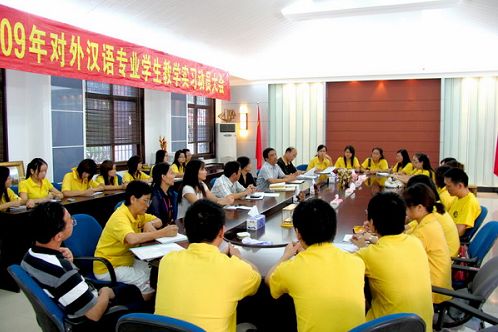 中新網(wǎng)10月10日電 據(jù)華僑大學(xué)華文學(xué)院網(wǎng)站消息,10月9日下午,華僑大學(xué)2009年對(duì)外漢語專業(yè)學(xué)生赴泰國(guó)參加“中華文化大樂園”教學(xué)實(shí)習(xí)動(dòng)員會(huì)舉行。華大華文學(xué)院副院長(zhǎng)陳旋波、副書記張燈、副院長(zhǎng)李曉潔以及5位部門領(lǐng)導(dǎo)和24名對(duì)外漢語專業(yè)學(xué)生參加大會(huì)。