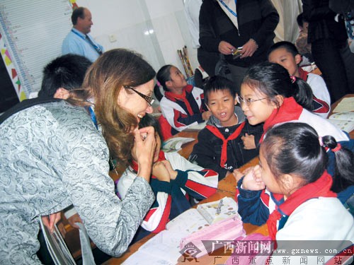 “這是南寧最好的學(xué)校嗎?”見(jiàn)學(xué)生的英語(yǔ)如此順溜,代表團(tuán)成員莫雅(音譯)好奇地詢(xún)問(wèn)道!八麄兊挠⒄Z(yǔ)太棒了!蹦耪f(shuō),這里一二年級(jí)的學(xué)生,居然能用英語(yǔ)和她進(jìn)行基本對(duì)話,令她感覺(jué)很意外。