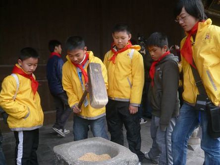 華裔青少年在埭頭村楠風(fēng)營地開展了磨豆?jié){、編草鞋、搗大米等系列活動。許多華裔青少年都是第一次接觸農(nóng)具,他們一致表示此次活動很新鮮,體會非常深刻。