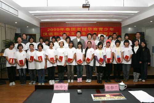 1月3日,由中國(guó)海外交流協(xié)會(huì)主辦、廣西海外交流協(xié)會(huì)協(xié)辦、廣西華僑學(xué)校承辦的“2009年泰國(guó)老撾華裔青少年漢語(yǔ)和中華文化冬令營(yíng)”在南寧閉營(yíng)。97名來(lái)自14所不同學(xué)校、社團(tuán)的泰國(guó)老撾華裔青少年在歡聲笑語(yǔ)中結(jié)束了為期12天的冬令營(yíng)活動(dòng)。廣西海外交流協(xié)會(huì)外聯(lián)部部長(zhǎng)林坤寧、廣西華僑學(xué)校副校長(zhǎng)張春蘭出席了閉營(yíng)儀式。