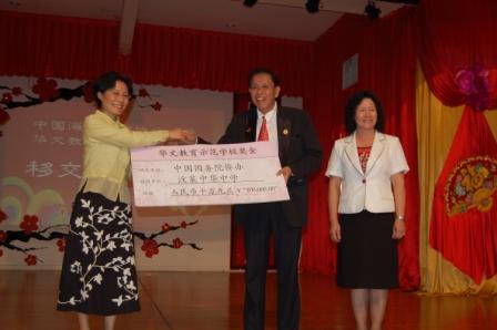 中新網(wǎng)2月8日電 2月6日,中國駐文萊大使佟曉玲在出席文萊中華中學(xué)舉辦的“虎臥華堂耀春輝”揮春比賽頒獎(jiǎng)典禮時(shí),代表中國海外交流協(xié)會向該校轉(zhuǎn)交了10萬元人民幣辦學(xué)經(jīng)費(fèi)。