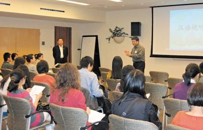 中新網(wǎng)4月16日電 據(jù)美國《世界日報(bào)》報(bào)道,美國韋伯斯特大學(xué)孔子學(xué)院日前在該校愛莫森圖書館會議室舉辦第二屆漢語教師研修班。近50位圣路易地區(qū)漢語教師及漢語教學(xué)熱心人士參加培訓(xùn)會議。
