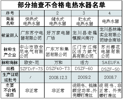 昨日,廣東省工商局公布了省內(nèi)流通領(lǐng)域銷售的電熱水器的抽檢結(jié)果,結(jié)果顯示,合格率為80.0%。從抽檢結(jié)果看,電熱水器產(chǎn)品的個別項目存在較嚴(yán)重的質(zhì)量問題,企業(yè)在產(chǎn)品設(shè)計和生產(chǎn)管理中都存在漏洞。