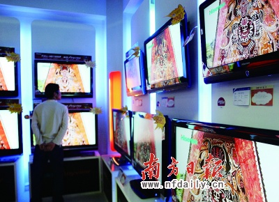 “買一款網絡電話即返千元現(xiàn)金”、“迎圣誕、賀元旦,買任一產品即可獲優(yōu)惠”……昨日,記者走訪市區(qū)三大家電賣場,在各大電視專柜,隨處可見促銷標語。而在不少國產電視專柜,都在主推互聯(lián)網電視,網絡暢想、電影下載等宣傳牌被擺在了顯眼位置。