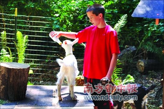 電視臺采訪了一位來自愛荷華城的少年亞歷山大。這名19歲的少年因沉迷網(wǎng)游輟學(xué),求助無方后家長將他送至這家中心。工作人員讓他照料中心飼養(yǎng)的山羊、小雞和其他動物,作為恢復(fù)日常生活的方式。