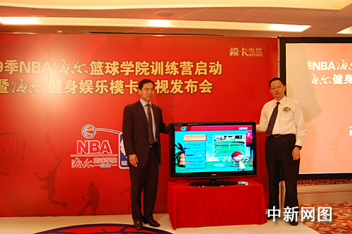 秉承NBA的體育及娛樂(lè)精神,在此次啟動(dòng)儀式上,作為NBA官方指定使用電視產(chǎn)品——海爾彩電推出了健身娛樂(lè)模卡電視,并發(fā)布了“云媒體”戰(zhàn)略。海爾集團(tuán)信息產(chǎn)品本部總工程師翟翌立博士介紹,海爾推出“健身娛樂(lè)?ā彪娨曋荚谧尭嗟娜俗悴怀鰬艟涂梢钥鞓(lè)健身并體會(huì)NBA精神。同時(shí),隨著網(wǎng)絡(luò)時(shí)代的來(lái)臨,針對(duì)不同使用習(xí)慣用戶的需求,海爾彩電推出了“搜狐在線網(wǎng)絡(luò)?ā焙汀把咐紫螺d網(wǎng)絡(luò)?ā,使得人們可以在家通過(guò)電視一鍵上網(wǎng)看高清大片,還將聯(lián)合更多的網(wǎng)絡(luò)內(nèi)容提供商,讓用戶無(wú)需擔(dān)心個(gè)人儲(chǔ)存設(shè)備空間的限制,可以隨時(shí)、無(wú)限量地自由選擇自己所需要的網(wǎng)絡(luò)內(nèi)容資源。