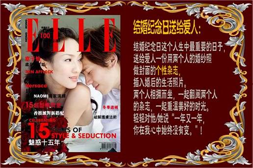 在情人節(jié)的清晨把它們放在餐桌上吧,當(dāng)身邊的戀人吃早餐時,隨手拿起報紙和雜志,當(dāng)看到印刷精美的雜志時,發(fā)現(xiàn)自己竟然上了雜志的封面、成為雜志的封面人物。一定不敢相信自己的眼睛,會大吃一驚的!為了效果更好,強烈建議買家把個性的封面、內(nèi)頁跟真雜志裝訂在一起,這樣就更像一本正式發(fā)行的雜志,這樣也就更會讓對方有意想不到的驚喜了!