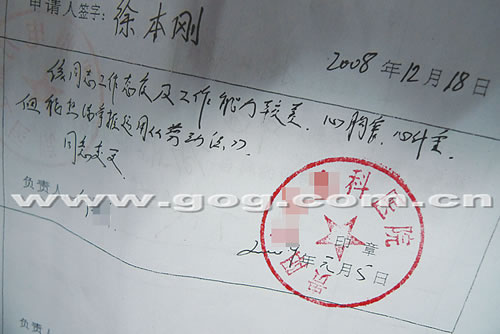 更大的意外還在后面,昨日(1月5日),當(dāng)徐本剛來到醫(yī)院,何某在為他蓋章的同時,簽下了以下意見:該同志工作態(tài)度及工作能力較差,心胸窄,心計重,但能熟練掌握運用《勞動法》。