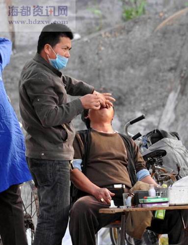在其中一個(gè)攤位上,一名老人從口內(nèi)脫出整副假牙,游醫(yī)接過后放在桌子上,拿出一個(gè)小酒盞,倒入粉末與水?dāng)嚭,等混合物凝固后倒入假牙牙床的缺陷處,又從塑料袋里掏?顆假牙塞上,全過程均沒戴手套。此操作前后不到10分鐘,收費(fèi)50元。