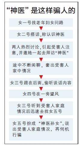 趙老太既感后怕又覺(jué)不解!吧襻t(yī)”怎么知道她家事呢?審訊中,騙子們交待說(shuō),這是“精心”設(shè)計(jì)的把戲。