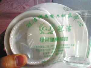 這兩家產(chǎn)品一個(gè)名叫“冠潔”,一個(gè)名叫“天康”。飯店老板告訴記者,名為“冠潔”的餐具是最近才進(jìn)入市場(chǎng)的,而名叫“天康”的餐具則已經(jīng)有了一段時(shí)間!肮跐嵅途叩睦习迨俏覀兊V區(qū)衛(wèi)生局長(zhǎng)的丈夫,他親自登門推銷,我們也不敢說什么,只好用一些。”