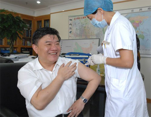 中新網(wǎng)8月12日電 今天起,中國(guó)自行研制的甲型H1N1流感疫苗臨床試驗(yàn)受試者開始接種第二針,衛(wèi)生部部長(zhǎng)陳竺作為第一個(gè)受試者,已于11日下午完成第二針接種。在第一針疫苗的接種觀察中,沒有發(fā)生嚴(yán)重不良反應(yīng)或時(shí)間,初步分析顯示,中國(guó)生產(chǎn)的甲型H1N1流感試驗(yàn)用疫苗安全可靠。