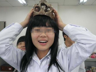 近日,一篇題為《重慶醫(yī)科大驚現(xiàn)“玩尸女”》的帖子在網上熱傳,帖子附帶多張照片,一些男女學生模樣的人,手持人體骨骼在一間標本室內擺拍,這種引起不少網友質疑,認為這是在褻瀆死者;同時,也有網友稱這是醫(yī)學生對死者的“一種親近”。