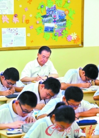 “溫總理與學生一起上課”圖片中只有總理坐姿端正引熱議