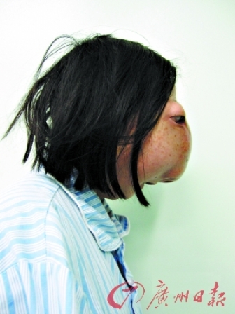 “活檢結果還沒出來,基本確定是‘骨纖維異常增殖癥’,其實也就是她的顱腦內、頜面部有著巨大腫瘤。”廖貴清教授表示,她的腫瘤與頭部等大,雖然呈良性無礙生命,但嚴重影響其生活。