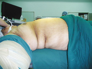 三天后,經(jīng)過周密的準(zhǔn)備,田曉的手術(shù)正式開始。可因?yàn)樘飼詫?shí)在太重了,手術(shù)中要處理的問題就多了許多。手術(shù)臺太小還是可以克服的小問題,怎么上手術(shù)臺可動了一番腦筋。為了讓田曉上手術(shù)臺,醫(yī)院還出動了幾個身強(qiáng)力壯的年輕醫(yī)生,可是都搬不動田曉。于是梁輝副主任借鑒了國外的做法,借助一塊很大的可以移動的“滑板”,才將他移動到手術(shù)臺上。