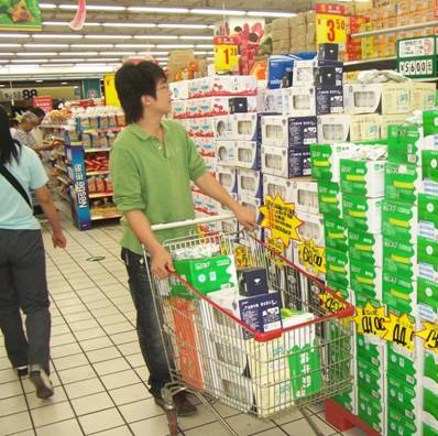 隨著京城確診兩例甲型H1N1流感,在馬連道的家樂福超市,記者看到牛奶產(chǎn)品區(qū)出現(xiàn)了購(gòu)買熱潮。不少消費(fèi)者的購(gòu)物車中,都放著一兩箱牛奶,而促銷人員除了要忙著導(dǎo)購(gòu),還要不斷進(jìn)行補(bǔ)貨。