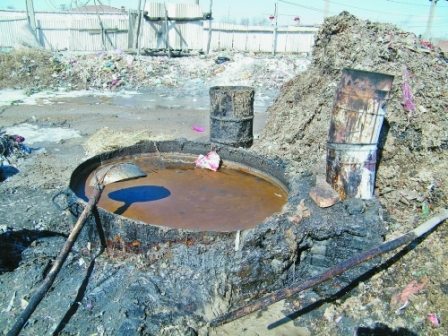 大慶第二制藥廠西側(cè)一偏僻的民宅內(nèi),一個(gè)用磚壘起的池子內(nèi),裝滿尚未加工的地溝油,剛一走近,惡臭撲鼻。