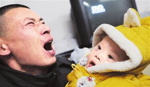昨日(1月20日)下午,從彭州趕到成都的范冉和妻子廖繼軒來到成都市兒童醫(yī)院重癥監(jiān)護室,看望兒子范瑞。10個月大的范瑞在兒童醫(yī)院已經(jīng)住了3個多月,范瑞不僅臉色蒼白,還目光呆滯,因為他是智障兒,并且還患有嚴重的先天性心臟病。據(jù)悉,范瑞原本住在成都市某醫(yī)院,但因為3個月前病危,被那家醫(yī)院轉(zhuǎn)送到成都市兒童醫(yī)院,直到現(xiàn)在。