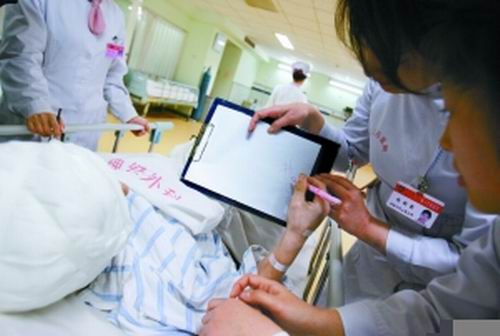 “從大年初六起,他就陸續(xù)在病歷卡上涂寫。”昨日,該醫(yī)院神經(jīng)外科副主任醫(yī)師閆潤(rùn)民回憶,趙某曾寫下自己的姓名,但只能辨認(rèn)出前兩字為“趙香”。
