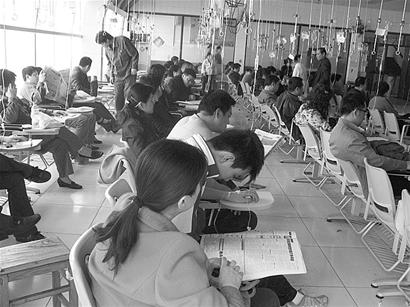 昨天上午,記者在濟鋼醫(yī)院內看到,門診樓1樓偌大的大廳內,約40張椅子上都坐滿了打吊針的患者,有的甚至站在那兒打吊針。
