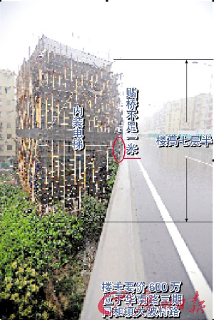 自建房距離華南路三期不足1米,房子和華南路仿佛在跳“貼面舞”。更讓人驚奇的是,該自建房不但每層都有6套大小不一的套房,而且還安裝了電梯。工地負(fù)責(zé)人說,如果全部賣出,這棟房子的身價高達(dá)600多萬元。