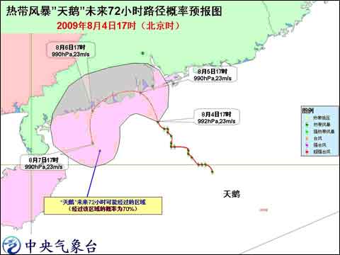 中央氣象臺(tái)2009年8月4日18時(shí)發(fā)布臺(tái)風(fēng)橙色警報(bào):