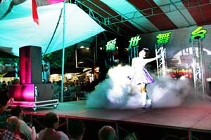 七月歌臺(tái)的燈光璀璨奪目,一身閃耀裝扮的歌手落力地勁歌熱舞,臺(tái)下觀眾有些閑坐在椅子上觀賞,更多是站在一旁湊熱鬧聽(tīng)歌的。只見(jiàn)有個(gè)身影穿梭在喧鬧的人群中,手持著半專業(yè)型相機(jī)正在專心攝影,為歷史留下紀(jì)錄。