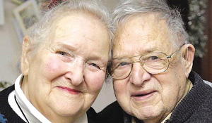 英國(guó)漢普郡滑鐵盧維爾市84歲老翁約翰·比尤沃辛和81歲妻子瑪格麗特盡管都已年過(guò)8旬,但他們?nèi)韵?0年前剛剛結(jié)婚時(shí)那樣恩愛(ài)甜蜜。