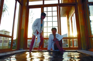 與溫都水城相比,天龍源略遠一點,但是豐富的娛樂項目仍吸引了不少度假客。這個大型溫泉娛樂宮不僅設有各種溫泉泡池、游泳池、水上樂園、康樂、按摩保健等常規(guī)項目,其最大賣點是水上歌舞表演。據(jù)介紹,目前這里正在上演的是由《千手觀音》總導演、北京奧運會開閉幕式副總導演、殘奧會開閉幕式總導演張繼鋼執(zhí)導的《圣水觀音》。而躺在溫泉池子里的按摩椅上,透過碩大的玻璃幕墻欣賞窗外的風景,也很是愜意。