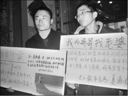 據介紹,夏海波兄弟將在中山公園、江漢路等繁華街頭舉牌征婚,以此擴大影響。