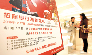 今年春節(jié),幾乎各家銀行都推出了刷卡消費贈送獎品的活動,市民不妨有計劃地多用用自己手里的銀行卡,春節(jié)過后說不定就能獲得意想不到的大獎了。(記者 王婷)