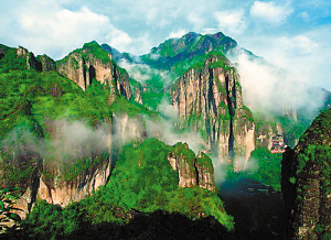 第二天的游程更精彩,我們早上去了大龍湫,到底占了個“大”字,水勢落差達197米,是小龍湫的整整3倍。沿著蜿蜒曲折的游道,觀兩邊奇形怪狀的山峰,那芙蓉峰初看像一把大剪刀,導游說還是“張小泉”牌的呢?蓳Q一個角度居然變成了帆船的桅桿了,再走幾步看又幻作一只啄木鳥,再走再瞧,又像極了一頭要偷吃蜂蜜的狗熊,真是移步換景。