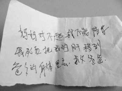 令崔女士怎么也沒有想到的是,1月24日中午12點(diǎn)半左右,當(dāng)她從醫(yī)院回到家,卻發(fā)現(xiàn)自家大門被反鎖了,“我只好從后院翻墻進(jìn)去,看到女兒躺在床上一動(dòng)不動(dòng),就像死了,旁邊有兩個(gè)安眠藥空瓶和一張遺書,上面寫著‘媽媽對(duì)不起,我不能陪你,我死后把我的肝移到爸爸的身體里去,救爸爸!贝夼款D時(shí)覺得天旋地轉(zhuǎn),“這兩瓶安眠藥有200粒!女兒是23日傍晚五點(diǎn)多在醫(yī)院吃過晚飯回家的,到我發(fā)現(xiàn)的時(shí)候,有十多個(gè)小時(shí)了!
