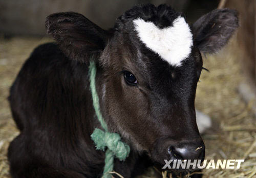 日本神奈川縣藤澤市一頭出生不久的小牛犢因額頭正中有一個(gè)規(guī)則的心形圖案而在牛年情人節(jié)到來前成為媒體競相追逐的對象。