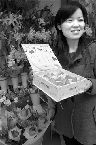 情人節(jié)來臨,原本是花店老板們大力進貨賣玫瑰花的絕好時機,為什么花店老板挖空心思賣起了草莓?花店老板程小姐表示,這也是他們偶然的創(chuàng)意,這不僅可為自己花店增加新的賣點,也能為情人節(jié)增加新的情調。